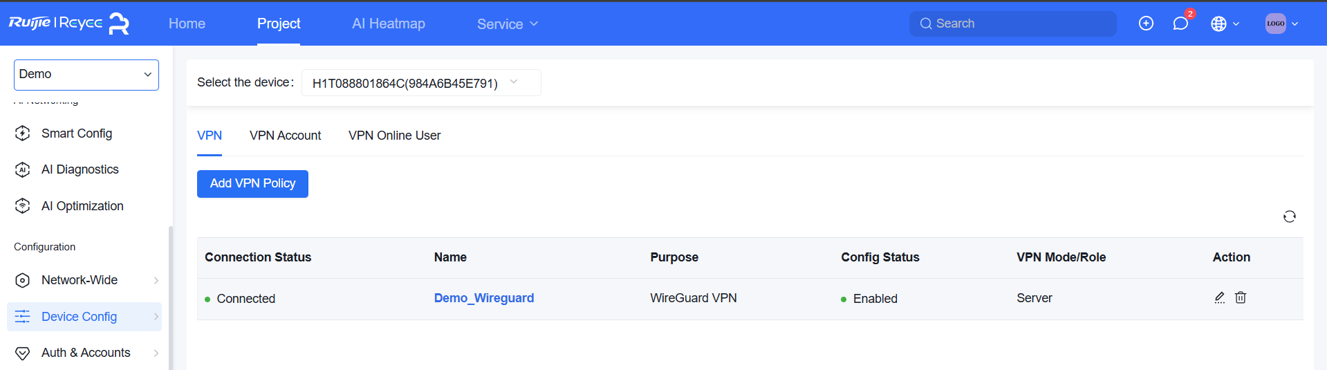 I. Cách thiết lập VPN WireGuard trên Ruijie Cloud